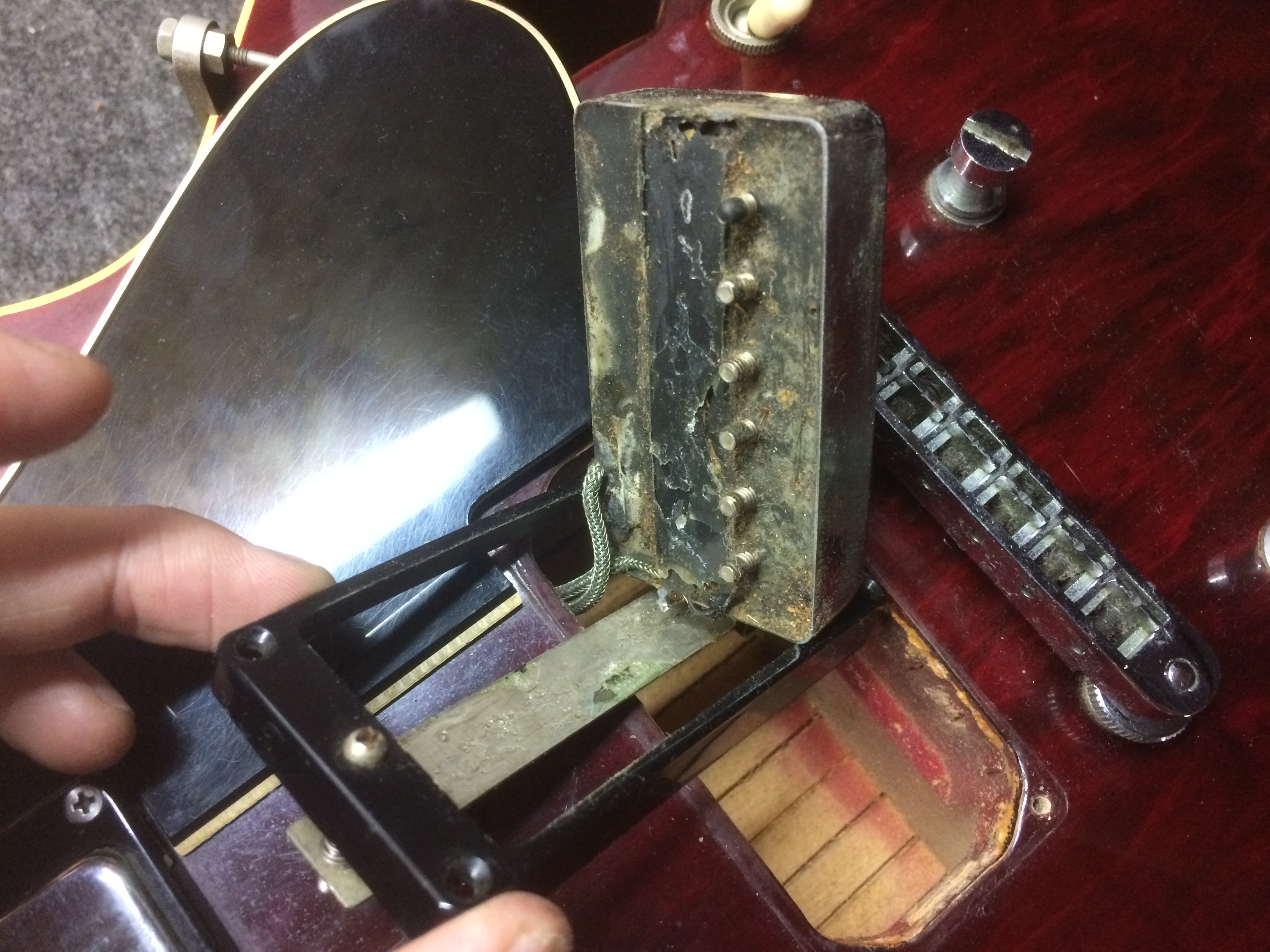 ピックアップの取付金具ががたつておりましたが再接着とアースのはんだ付け直しを施しました