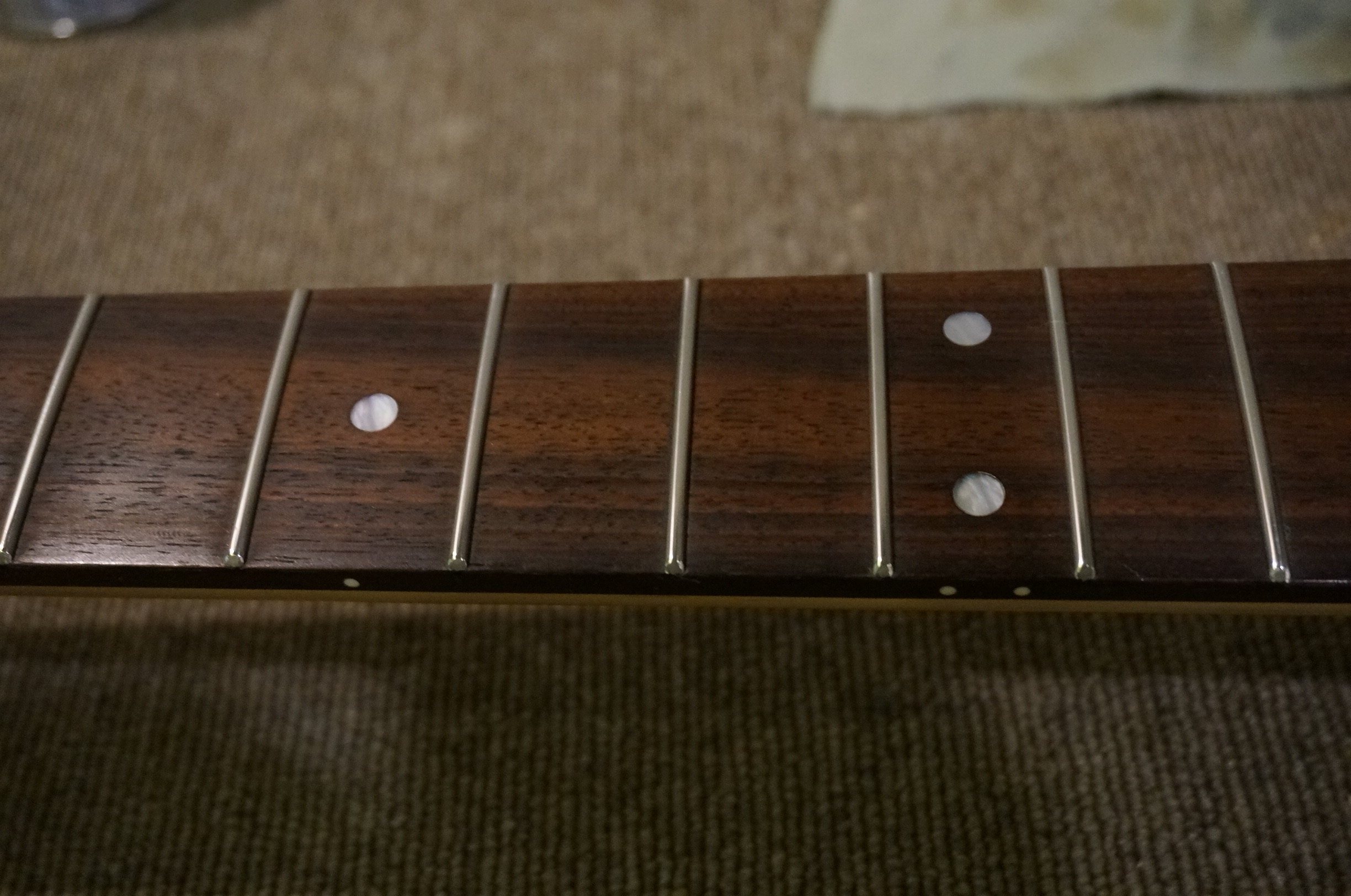 指板にレモンオイルを塗布。ピカピカに仕上がりました
