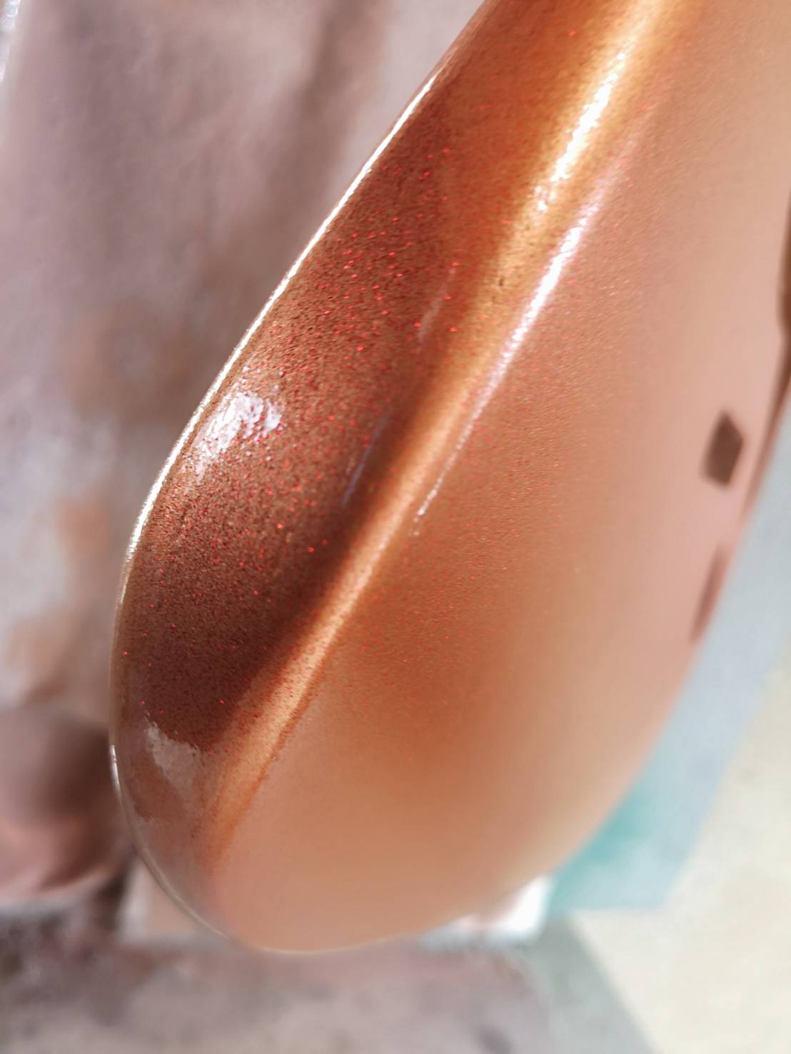 トップコートにラメ レッドフレークを入れました